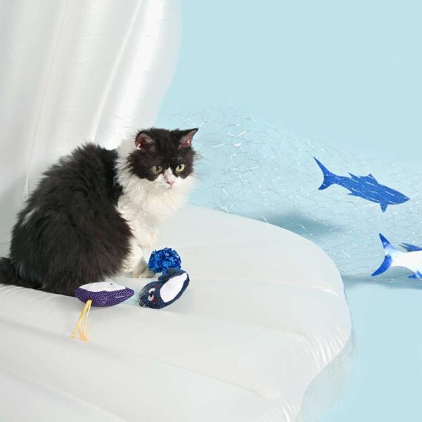 Discover our 2-pack camping-inspired cat toys, including a sausage and a campfire. The sausage toy features sisal materials designed to clean your cat's teeth and massage gums while he plays. Plus, both toys are packed with North American-grown catnip for hours of wild play. These toys are the ideal size for your kitty to swipe, bat, and chase, ensuring an engaging playtime.