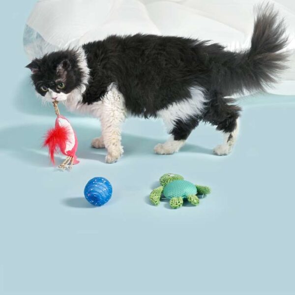 Get your kitty ready for paw-some playtime with our 6-pack catnip collection. Perfect for households with several adventurous kitties. The set features sturdy ropes for engaging tugs,crinkle textures for that enticing sound, and a glittery pom pom ball for chase-and-catch fun. Let the indoor camping adventures begin — it's playtime!
